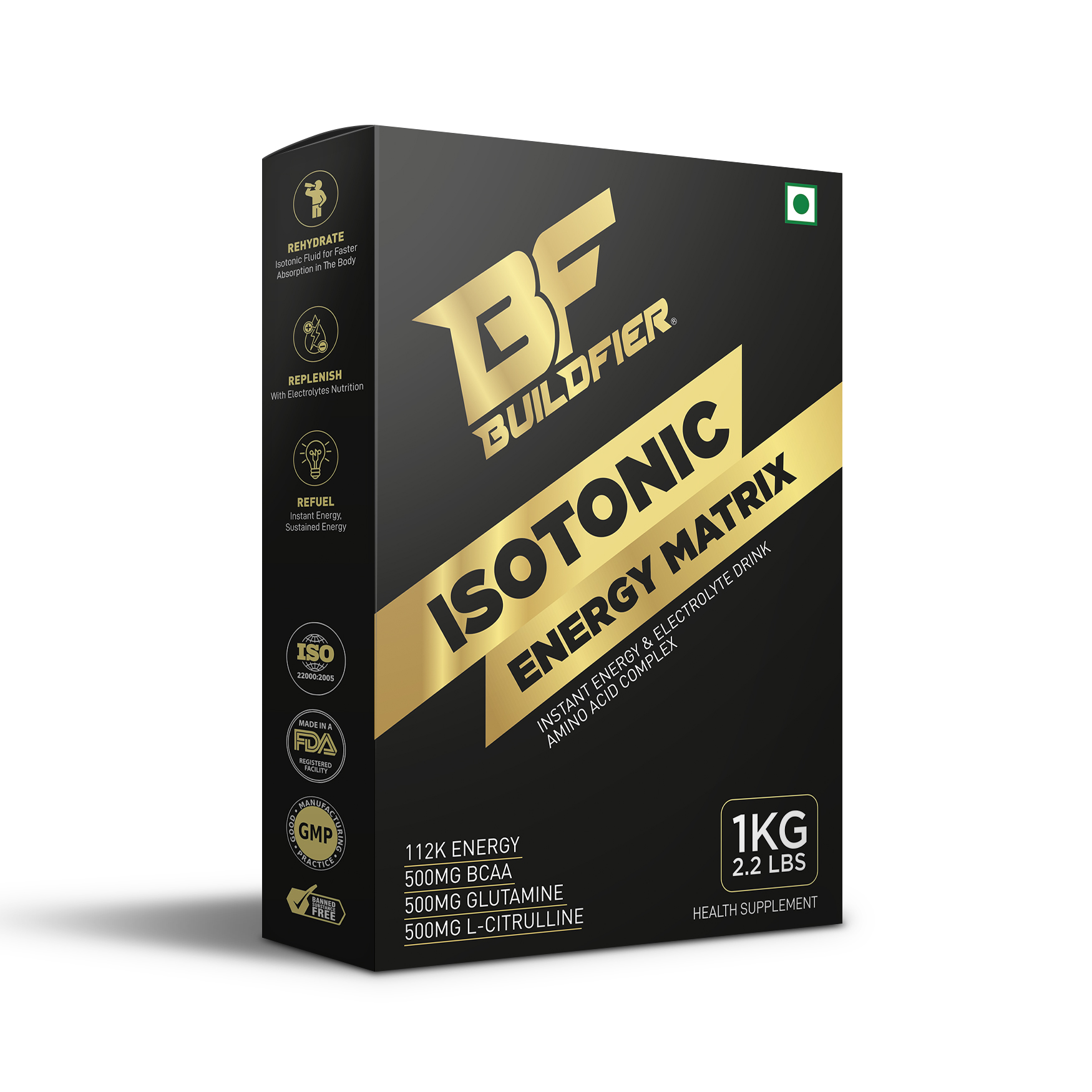 Buildfier Isotonic Power Drink Is An instant Energy drink which consists Taurine, Inositol & Glutamine Added Vitamins and minerals With Great tasting Flavours Per (33g) Serving consists 112 Kcal, (500mg) BCAAs, L-Glutamine (500mg), L-Citrulline (500mg) For instant energy and Refreshing hydra- tion during or after workout.